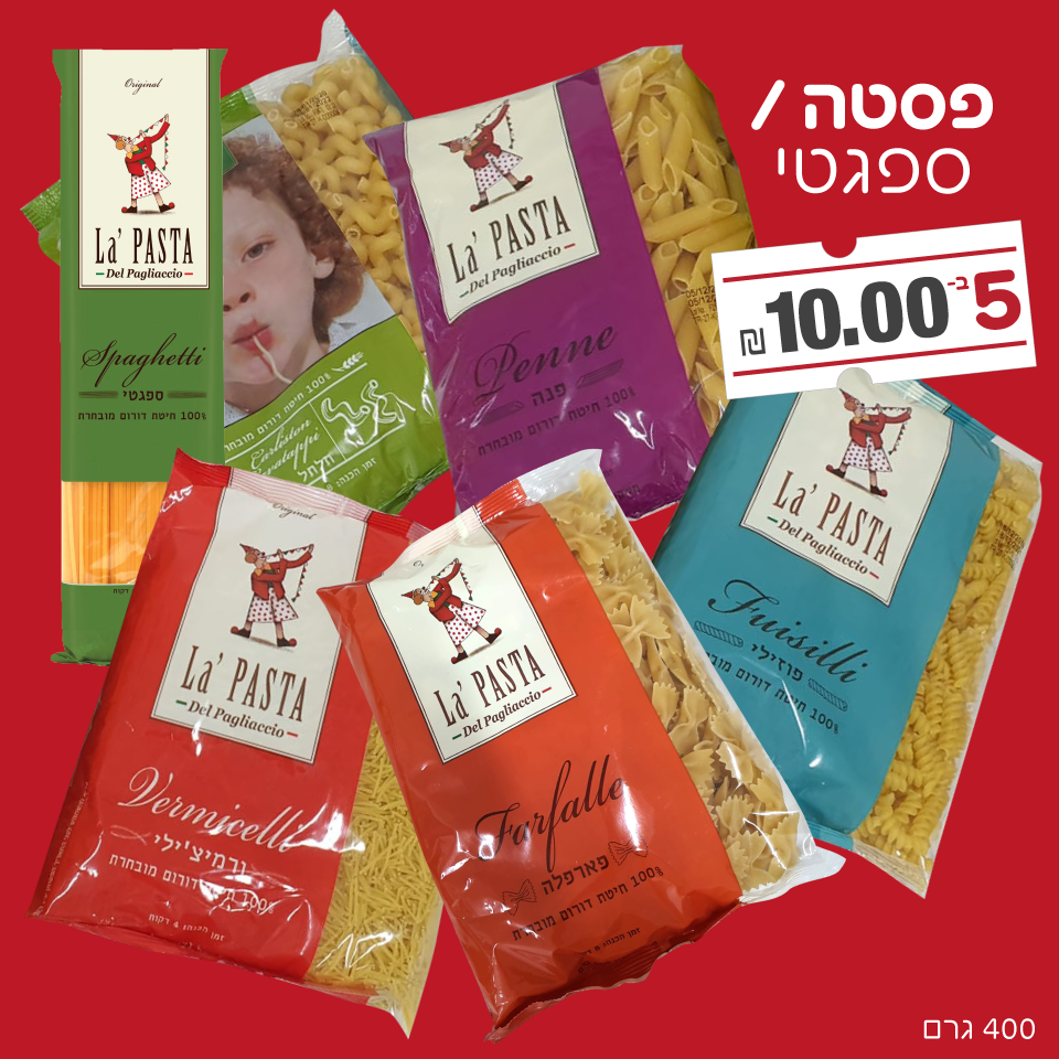 במחלקת מוצרי מזון תמצאו מאות מוצרים במחירי BOOOM! פסטות, אורז, טונה, סרדינים, קטשופ, קמח, סולת ועוד אלפי מוצרים !